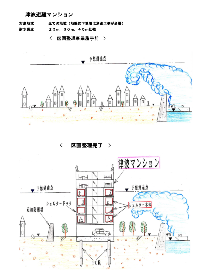 この地区には、マスコミで取材されている津波タワーがただ1基のみが、