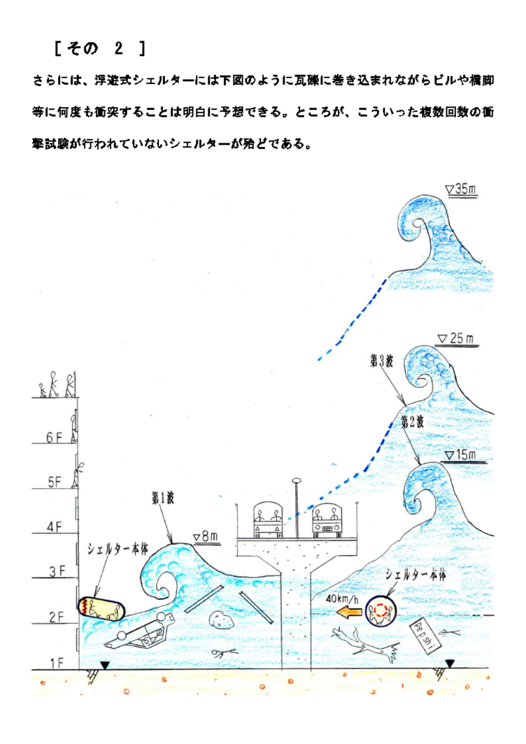 シェルター本体の瓦礫の衝突による破損だけでなく、水密扉からの水漏れで死亡する。